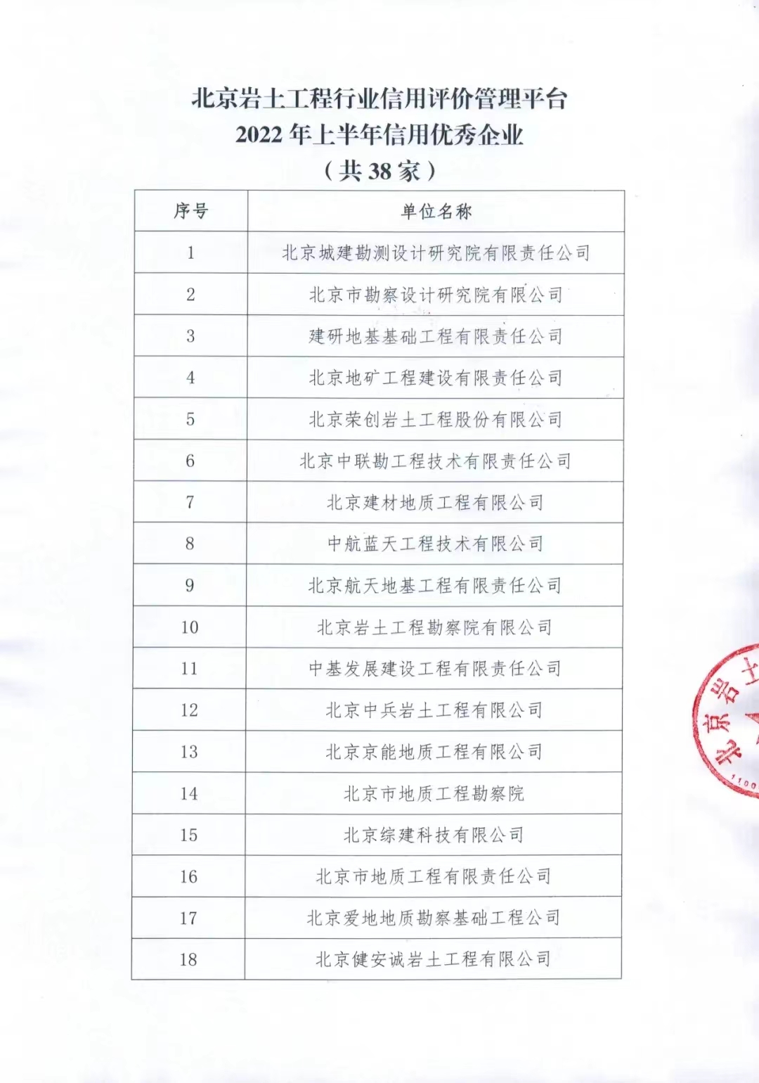 北京巖土工程行業(yè)2022上半年信用優(yōu)秀企業(yè)